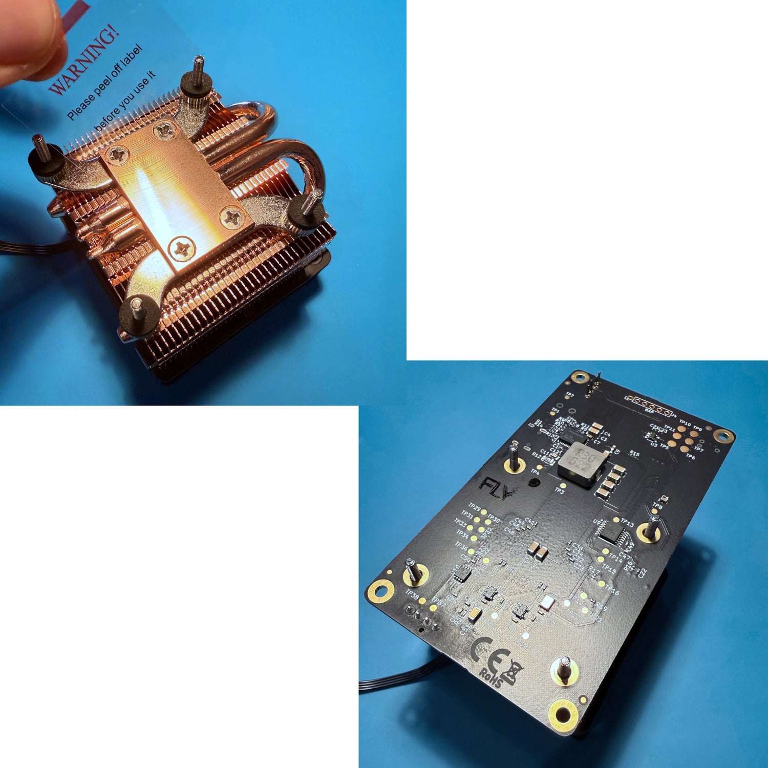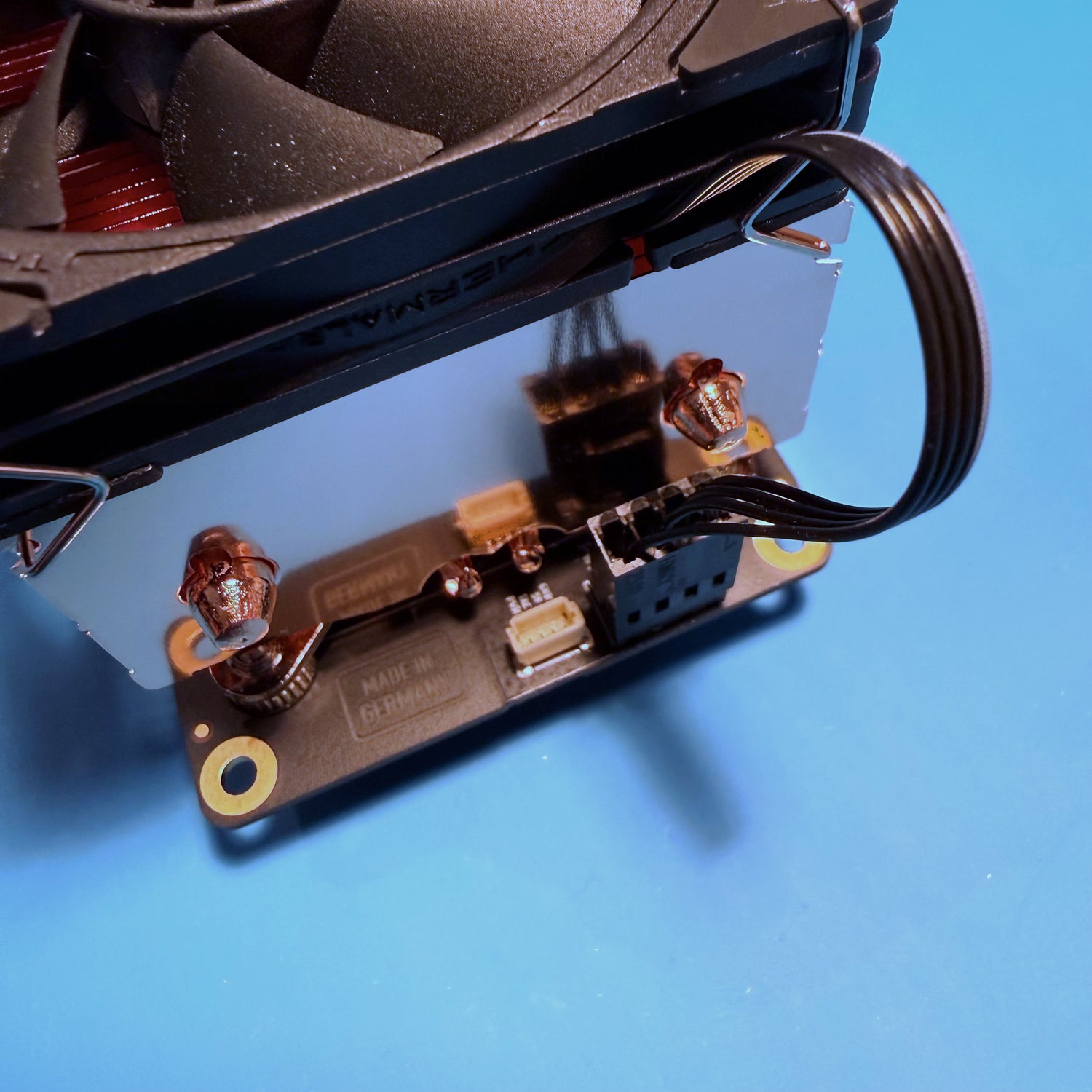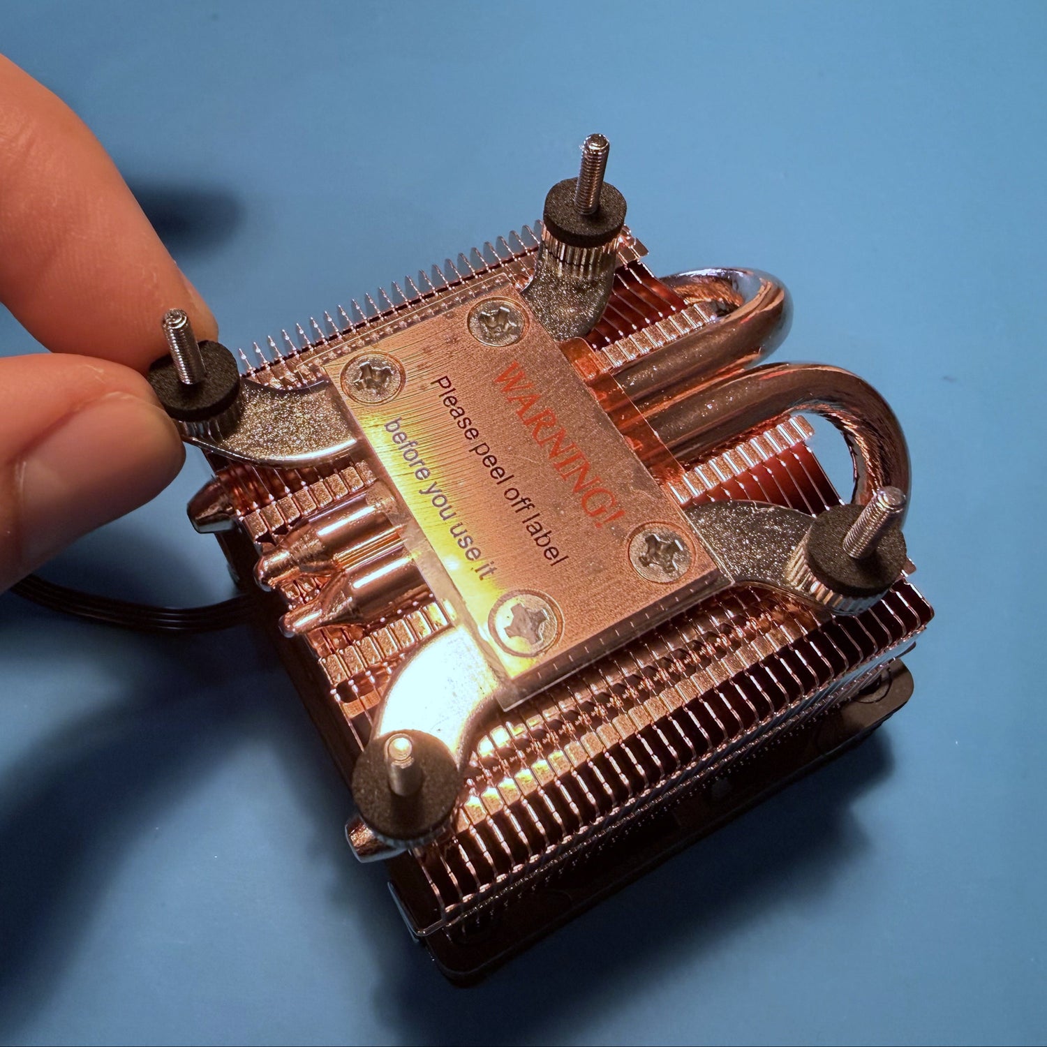 Der Kühlkörper nicht mit den Händen angefasst werden! Durch den feinen Fettfilm auf der Haut etnstehen bei Kontakt mit dem Kupfer Flecken, welche Dauerhaft sind.